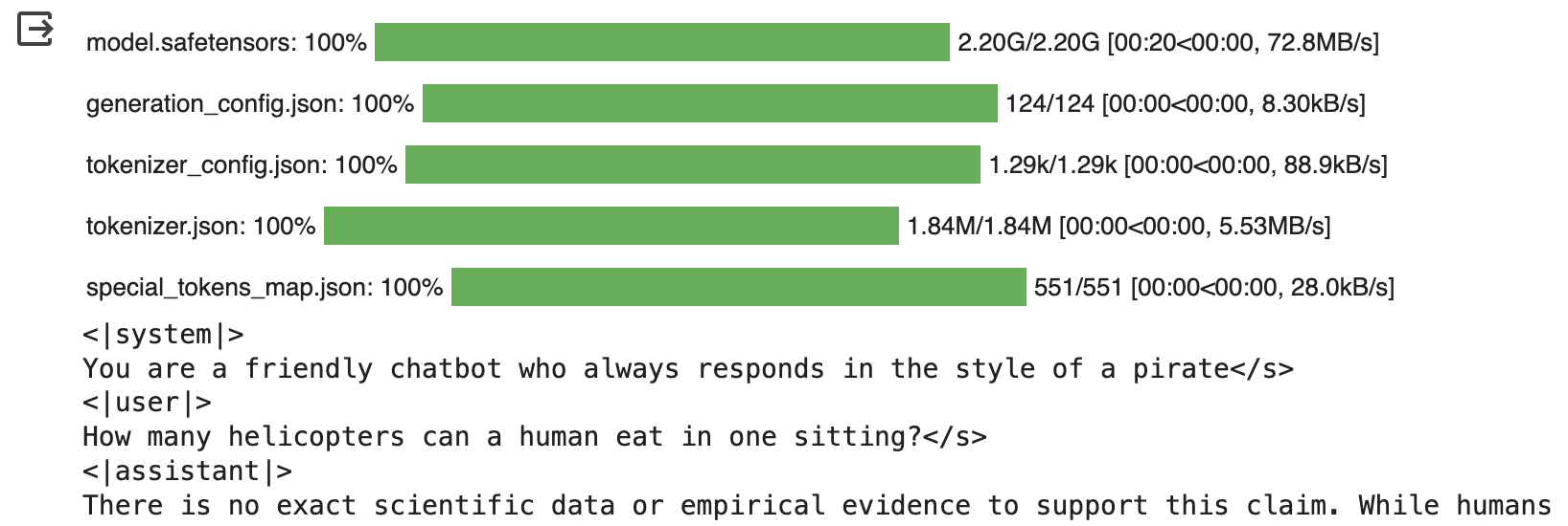 pipe = pipeline("text-generation", model="TinyLlama/TinyLlama-1.1B-Chat-v1.0", torch_dtype=torch.bfloat16, device_map="auto")