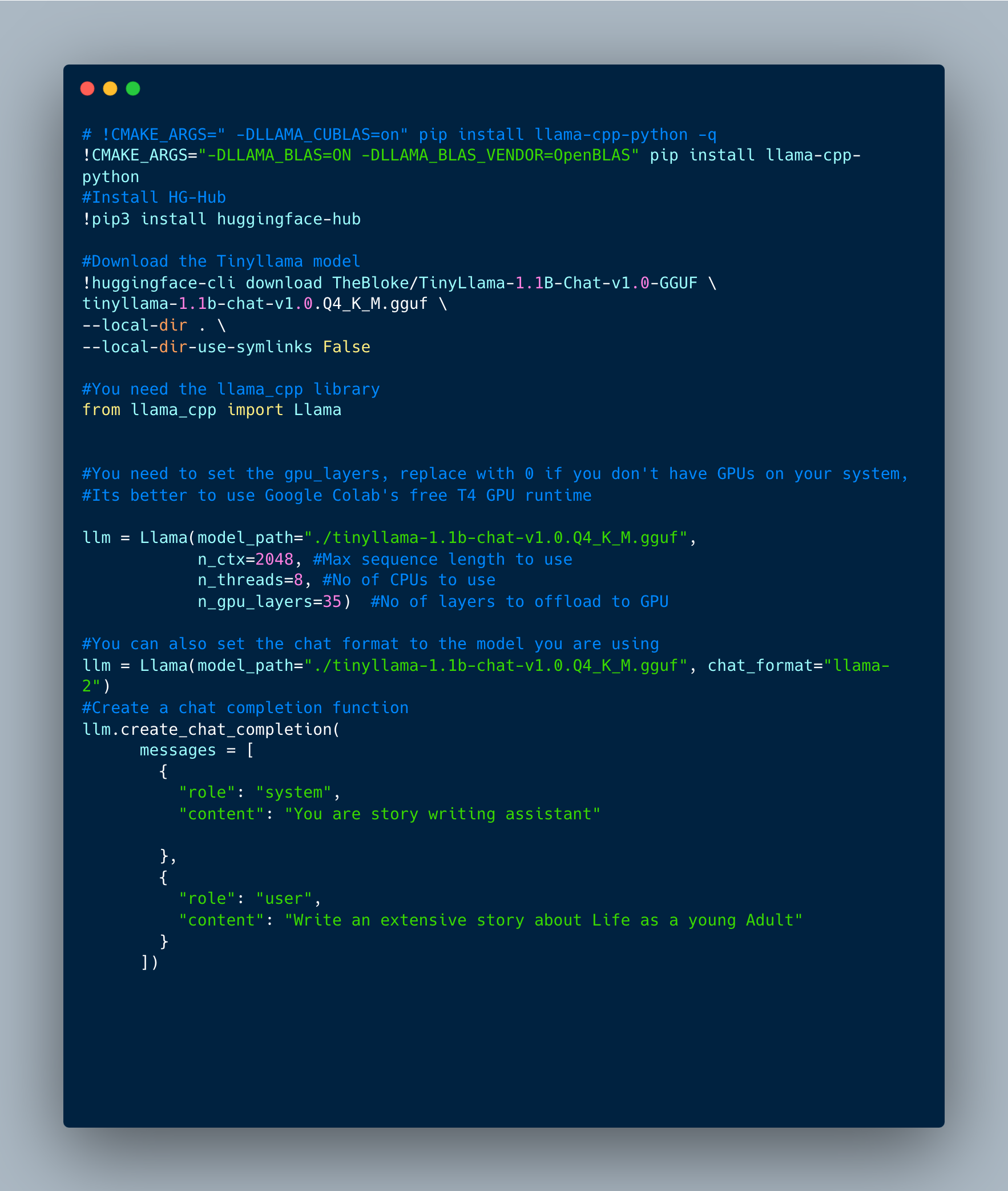 llm = Llama(model_path="./tinyllama-1.1b-chat-v1.0.Q4_K_M.gguf",